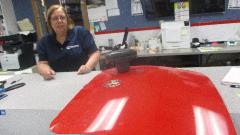 Getting late in the day we needed to hustle a bit to visit APS Tower Paint Company, Inc in Appleton, WI. Surprise, another name change, two years ago the place changed hands and is now Finishmaster (Branch #24). As far as I an tell it is the same shop with same products and services. They can custom mix automotive paints to your specifications. If you have an original paint code, no problem, mix to match, package in bulk containers, aerosol cans, touch-up bottles, whatever you like, and likely ship it out same day. If you don't have a paint code, but can supply a sample part, they can scan it for a perfect match. So I put it to the test. My MGA was repainted 18 months ago, having "matched" the color sprayed on seven years earlier. I pulled the boot lid off (remember my thumb screws) and had is scanned, ordered two spray cans and a touch-up bottle to be shipped to a friend's home in Illinois. Order was placed 4-pm Thursday, was processed and shipped on Friday, and arrived Saturday mid day. Nice service.