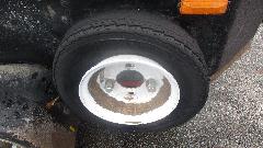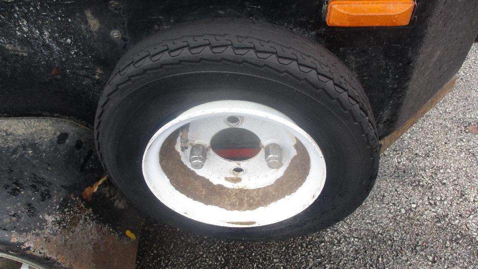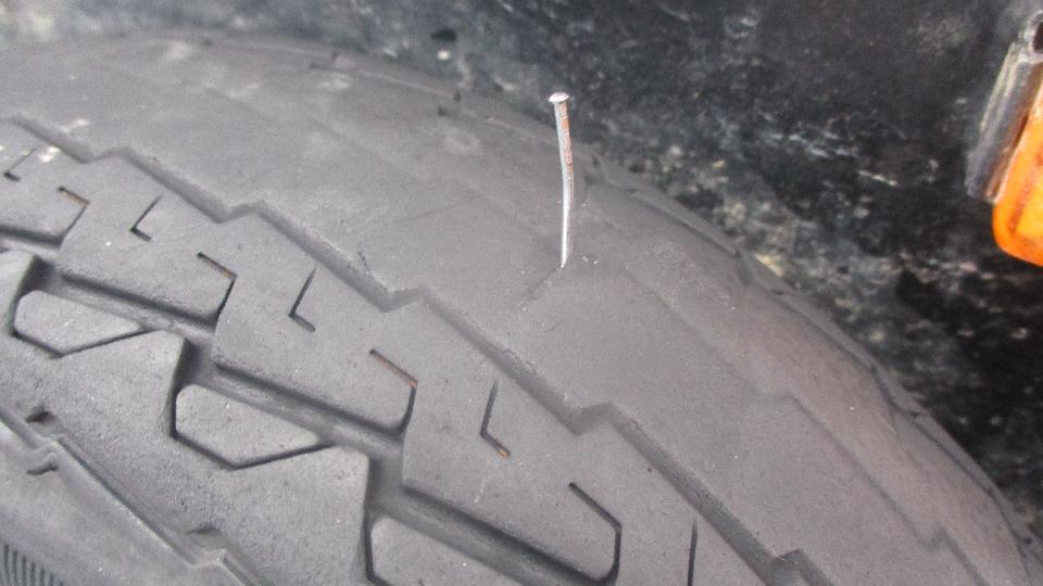 Trying to sit it out, but no luck. Restaurant closed at 11-pm, and we ended up changing the tire in the rain. Amazing what one tiny little brad nail can do (and I pulled it out with my fingers). These tires have only 10,000 miles but are just about toast. Looks like too much tire pressure with 1-inch wide wear band in the center and very little wear on the shoulders. Looks like we will be shopping for trailer tires again in the next day or two.