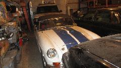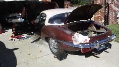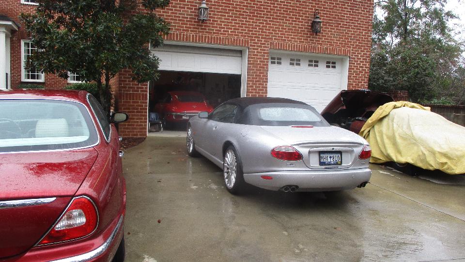 Elliot Cox in Columbia, SC. Been here a year earlier, November 2, 2016. He has since gotten rid of a couple "other odd cars", and is now down to a hand full of Jaguar. Last time I did some carburetor adjustments on the red E-type Coupe. This time there is a "new" E-type DHC with hardtop that hasn't run for a few years, and we intend to do something about that. Today it still dribbles, and we will need to get the car inside, and there are some schedule conflicts, so we will defer the fun stuff until tomorrow.