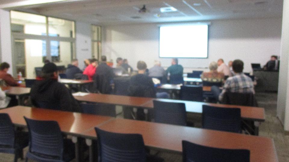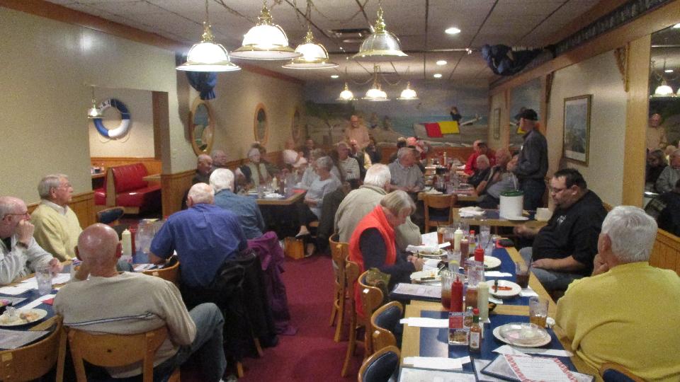 Not much special about this next picture, but it was the reason for hanging around central Illinois for the past few days. We dropped in on a meeting with Champaign County Sports Car Club, an affiliate of SCCA, big on autocross, and occasional TSD road rally. This is the primary club I was hanging out with from 1991 to 2002 (or there about). That association resulted in a lot of experience breaking and fixing my MGA while beating it to death regularly in serious competition. It has a lot to do with development of technical information on this web site, much of it derived from "The School of Hard Knocks". Just thought we would drop in on these guys to see how many of the them might still be hanging in there and remember us 15 years later. At least a half dozen old friends out of 25 people in the room, and a jolly good time was had by all.