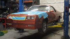 sneaking in. The red van is a 1964 Chevy snub nose (get the scaffold to paint the roof). The white beast is a Ford Galaxy 500. The hybrid hot rod is a Chevy El Camino truck with Monte Carlo front clip, Corvette rear valance and rear lights, and a big block stroker engine. Not my cup-o-tea, but I can appreciate the thought. Tony will be happy when these 20-foot long beasts are out of his shop to free up space for more LBC's.