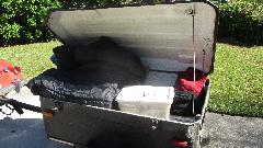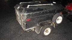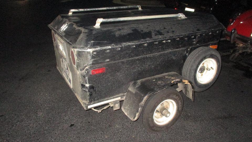 A little more later the Lincoln backed up in a big arc, smacked our little trailer moving it over a few feet, continued on to backed over a curb and sidewalk before coming to rest. Now the trailer has another dented fender and another small smudge in the paint, no big deal. The Lincoln had two people inside, young lady in the driver's seat, young gentleman on the other side, both asleep. I rapped on the windows pretty hard but could not wake them. Doors locked. If the car would back up a little more it would go into a water retention pond. I think someone called the police. A bit later there were two squad cars and a tow truck, the Lincoln being picked up to be hauled away. Nothing wrong with the car that I could see, but apparently impounded. The cop was telling someone they would have to show up in court. Stuff happens. The trailer is still serviceable, almost losing count of the number of times it has been hit, at least the forth time for the RH fender and four times on the rear end over the years. Well built, tough nut to crack. The steel fenders I installed in 1998 hold up better than the original fiberglass wings.
