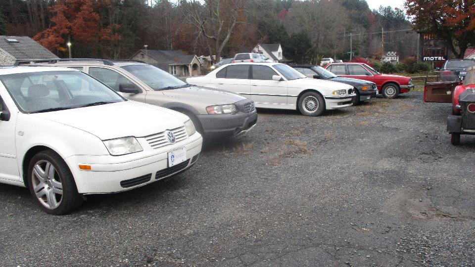 Enough fun there, time a wasting we headed north again, to another shop, the fifth in a row that didn't answer the phone (but we my have had the wrong number). At 4:30 pm sharp we arrived at Swedish Werke in Boone, NC. Reported to work on a variety of older European cars, including vintage British cars. Seemed to be a preponderance of BMW and a few Mercedes, just a few British cars (a Mini and a couple Land Rovers), but possibly matching the number of Volvo in site. The shop was closed when we arrived (supposed to be open 9-5 week days), and no clue if it was open earlier or might be open tomorrow. So we took some pictures and moved on. Will see if they might answer the phone later.
