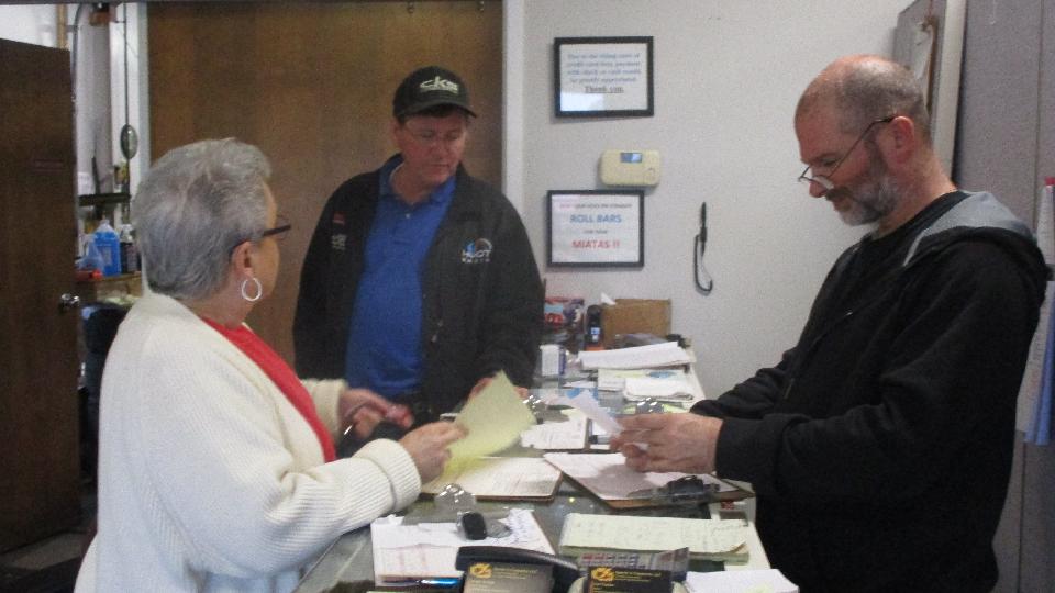 A bit of detective work on the internet turned up the same name at a different address, so we gave that one try first. What we found was Sports And Compacts in Raleigh, NC, specializing in Mazda and MX5 (Miata) cars. But indeed we did find Carl Cason there (on the left) with his partner (on right). Seems like the partner is the Mazda specialist, while Carl is still heavy into vintage British cars (when the business is available). So score one for the good guys. And the older address is still used for storage.
