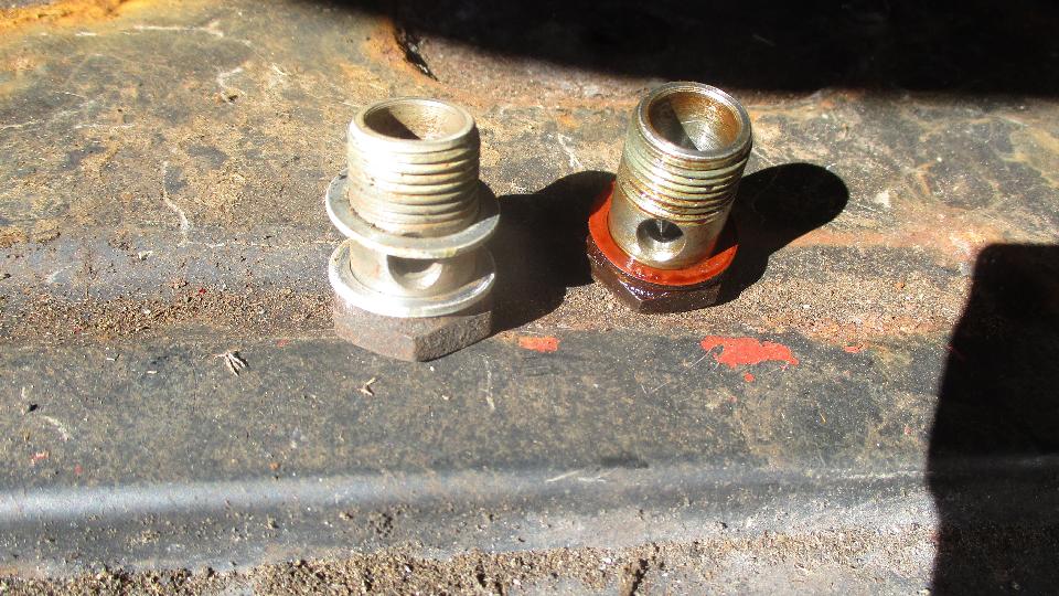 it up. Disconnected coil wire to save coil while testing the fuel pump. Fuel pump ran immediately, but did not pump fuel. Disconnected hose from tank and dropped it into a can of fuel, but no pumping. Disconnected hose going forward from fuel pump, dropped that into a bucket, but no pumping. On the chance that someone may have switched the hose connections on the pump, I swapped hoses between fuel can and bucket. That resulted in blowing bubbles in the fuel can, so the fuel pump was pumping air. Fuel not going into the pump, but air coming out, means there is an air leak on the inlet side of the pump. Disconnected both (plastic) hoses from pump for inspection. Both hoses checked out okay, but this revealed a missing seal washer on the pump inlet banjo bolt.