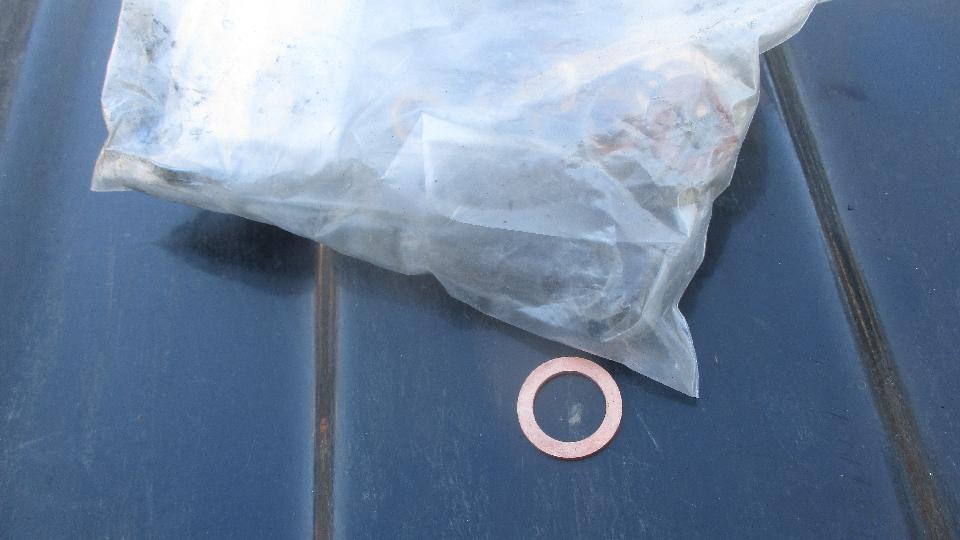 Tapping the magic trailer for parts, found a copper washer that almost fit. Also found fiber washers intended for MGA carburetors, correct size but kind of thin, so elect to use two thin ones in place of one thick one. After reassembly, still sucking air. Bummer. Have to remove the fuel pump for inspection.