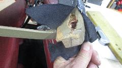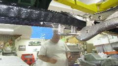 Ron was busy much of the day, giving us some time to catch up with paperless work. Met back at his place about 3-pm to take up where we left off the day before. However, there was another MGA sitting in the wings, another friend's restoration project nearing completion. It dearly wanted a convertible top installed, but was missing some key pieces, like brass sleeves for the front wood bow and the steel strap for the rear edge.