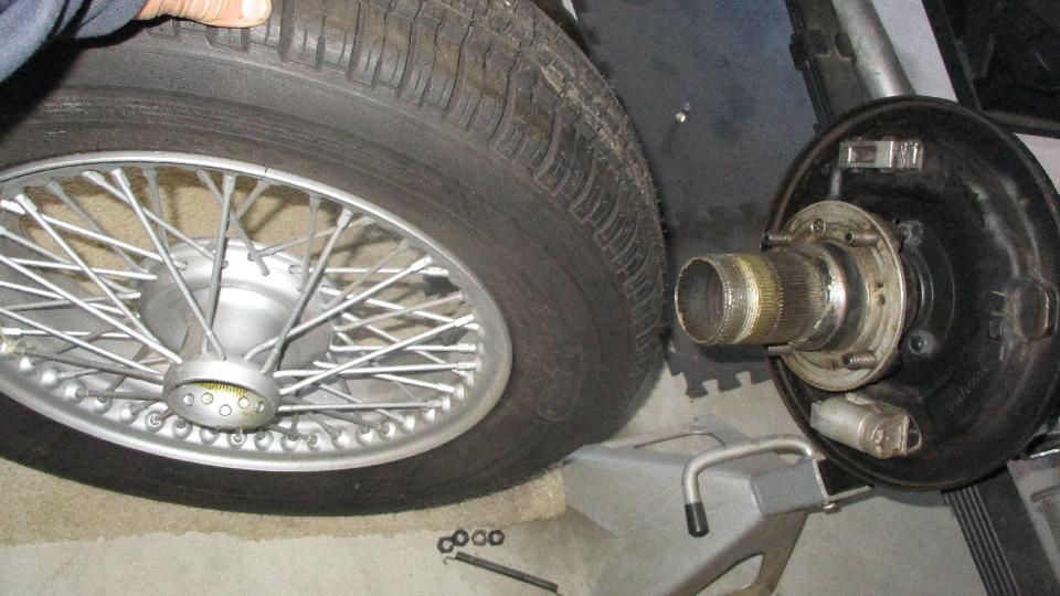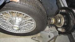 Some of this was a lesson in what can happen when a restoration spans a quarter century. Ten year old wiper arms have incorrect splines that will not fit on the spindles. New painted wire wheels and new tires are 17 years old and never touched the road. New 20-year old Moss Grille doesn't fit the nose of the car very well, and has never been installed. Front suspension trunnion rubber seals are perished, never having been in contact with any grease (but the swivel pin seals seem to be okay). A pair of new 6-volt batteries, possibly decades old, may be okay because they were shipped dry and have not yet received the acid fill.