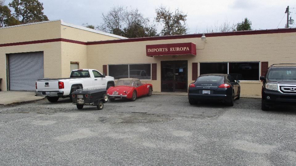 Sooner or later wee were destined to get a little luckier. Looking for H.P. Imports in High Point, NC we ran across Mike Byer Autoworks. This one has nothing to do with British cars, however, they do rent out space in the back (same address) for H.P. Imports, so this shop is still in business. The owner was out to pick up or deliver a car, but we did find a few British cars on the site, along with some other vintage import models.