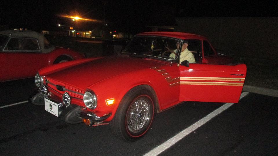 It was an impressive club meeting with at least 42 people squeezed into a long narrow dining room. I must have missed some of the British car arriving later. Nice dinner, one or two new members and a couple visitors (us), typical club business discussions. After the meeting, another British car was stuck in the car park. The ignition switch on the TR6 was stuck. The key worked, would insert and turn a small amount, but the switch was otherwise stuck and would not rotate. After several minutes we were in the process of jump wiring the ignition coil when the switch gave in and worked so it started. Sometimes you just have to threaten it.