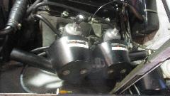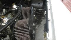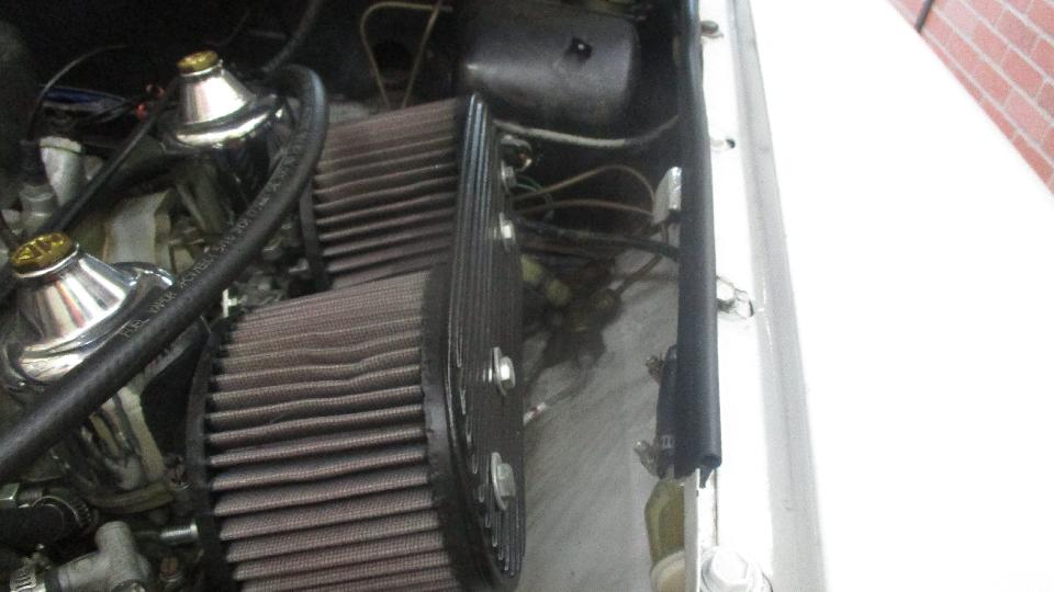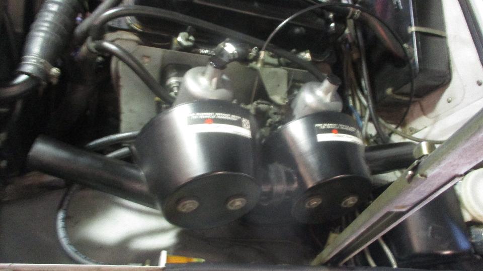 out some smoke at odd moments. Definitely running rich, which was easy to adjust. Notice the cut down stubby screwdriver for mixture adjustment on the SU HIF carburetors. But it was still a bit rough at idle. The timing light showed 22d BTDC at idle, not too bad. But it also showed 46d BTDC at road speed (vacuum disconnected and plugged), which was way too much. That 24d difference is 12d mechanical advance at the distributor. After "de-tuning" it to 32d BTDC at road speed it came out to 8d BTDC at idle, only needing to reset idle speed to be happy.