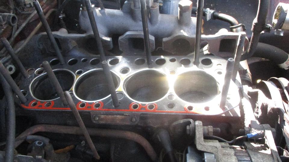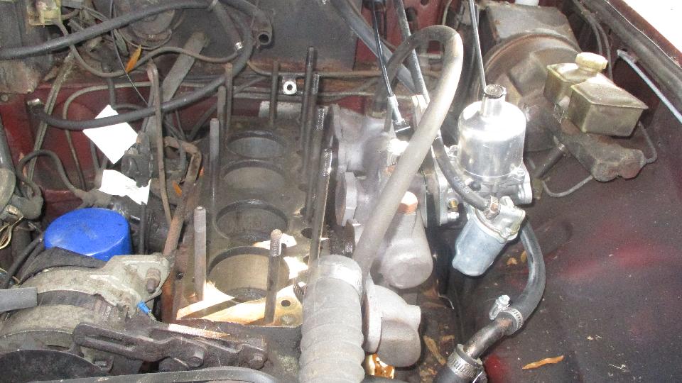 Today's appointment was visit to see Bill Waller in Albany Georgia. You might recall that on prior visits we had revived a chrome bumper MGB that had set for many years. Today we were to going to install new cylinder head on a rubber bumper MGB. This car previously had the single Stromberg carburetor and catalytic converter. It is now retrofit with a 1-3/4 inch SU carburetor and intake manifold from an Austin Marina. In short order we had cleaned the top of the block, sorted a few head studs, and placed a new head gasket.