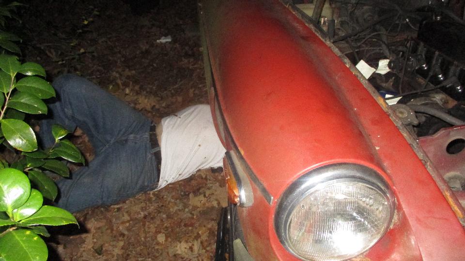 Taking advantage of a warm dry evening Bill thought it was a good idea to change the clutch slave cylinder (before an expected cold front and rain storm). This car is getting very close to driving away for the first time in many years. We think his wife is going to be pleased, as this used to be her daily driver before they got married. We will have to toddle along tonight, as we have other appointments tomorrow, but we will be checking on this one again later.