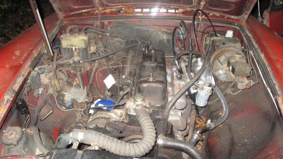 As daylight was failing I was fixing a leaky fuel filter, installing a new fuel hose and finishing the coolant fill, after which the engine fired right up like it had never been asleep. A little time was invested to adjust the carburetor and get it running smooth. Kelly was absolutely delighted that her car would be back in service. There was a bit of unfinished business (like soft brakes) so we checked into a cabin at the local campground to stick around another day. I suppose there is a question about the electric fuel pump near the fuel tank (and fuel pressure regulator in the engine bay), when this car originally had a mechanical fuel pump on the engine.