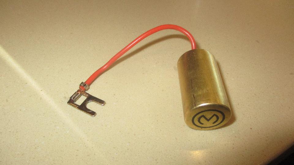 Mallory ignition condenser. I have had a terrible spate of failed Mallory condensers in recent years. The last good one was installed in May 1999 and lasted 99,313-miles and 12-years. The one installed in June 2011 was purchased earlier (possibly in late 1999). Since 2011 the Mallory condenser life spans have been: