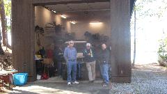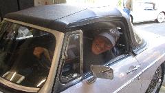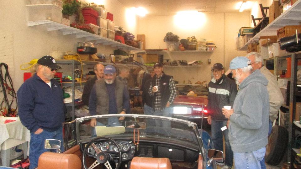 Traffic was picking up. By the time the buffet table came out we had as many as 15 people in the shop. Next up as the grey MGB belonging to Steve Bettes. This one also had a rough idle with a bit of a bite, which turned out to be running lean on both carbs. Easy fix, and the timing was spot on. Get the victory picture with the big grin.
