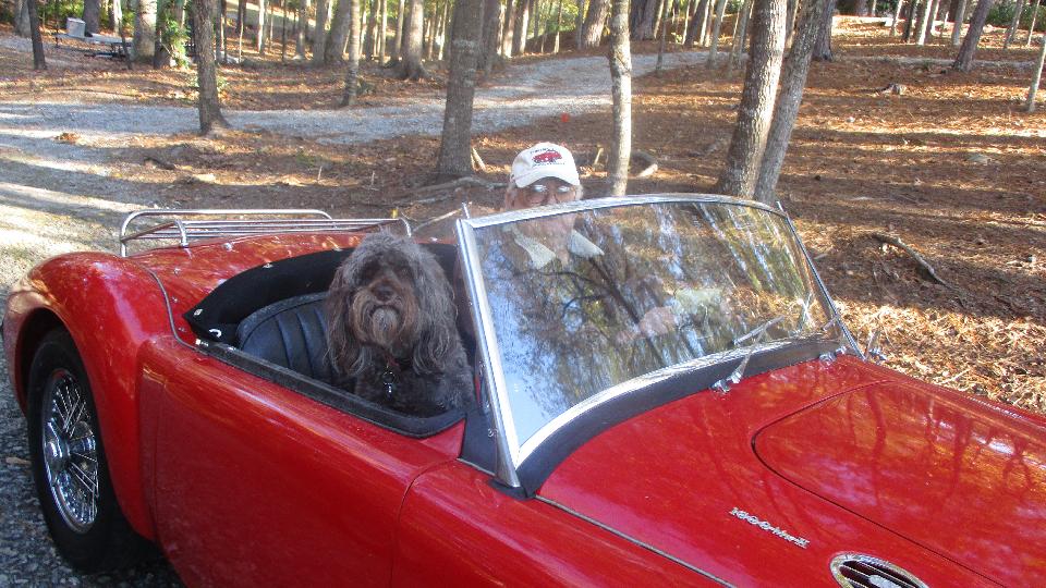 just been painted in a car port and restoration not quite finished. Lots of chat about carburetors, cooling, fuel boiling issues and how to deal with modern motor fuel. As the party was breaking up Larry Stephens was putting his MGA 1600-MK-II back in the garage (with the dog enjoying a free ride). Play time over, we were off to find a WiFi spot to catch up with the gunt work. After 11-pm we had another 90-minute jaunt back to Albany, GA where we had just arranged another appointment.