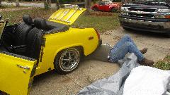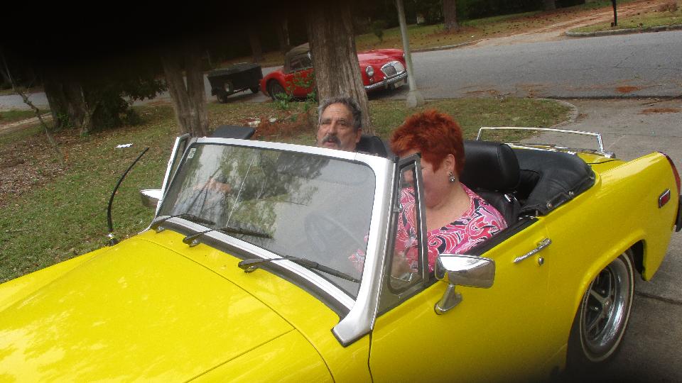 Got to sleep in today, late breakfast, then at noon we were dropping in to see Tom and Kelly Seegmueller in Albany, GA. They have a nice 1978 MG Midget with the original TR Spitfire engine converted to a downdraft Weber carburetor, still having the catalytic converter in place but no air pump.