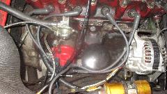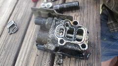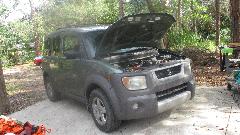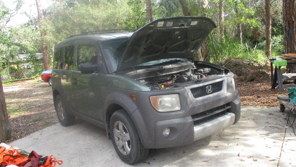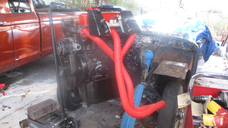 The tubular headers (extractors) being painted and baked yesterday made their way onto the Spridget engine this morning. The resident Honda Element with VTEC engine (variable valve timing) was getting a small rubber gasket transplant to cure a serious oil leak.