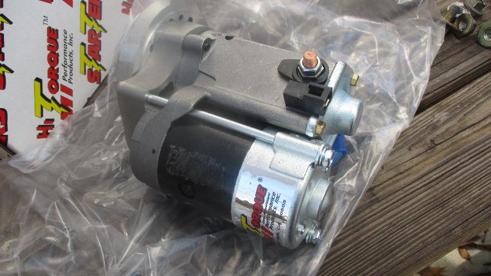 So it works, with a distinctly different whining sound during coast down after cranking ends. Cranking speed (when warm) is about the same as with the original starter, about two revs (4 compression strokes) per second. I have been told it takes less current and may crank somewhat better under difficult conditions, like cold weather or low battery charge condition. Will let you all know after I have some real world experience with it.