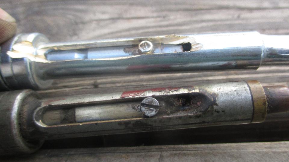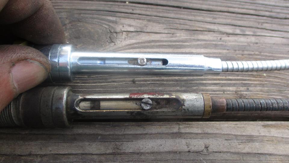 7-mm, and I don't carry metric wrenches, so 9/32 is close enough (barely). But this means I now have to use two different nut drivers to install and adjust the heat control cable, original 5/16" for the cable jacket bracket, and 9/32" for the cable stop. And a countersink to de-burr the cable hole is too deep making a nearly sharp edge that may shear the wire when the screw is tightened. How can they have so many screw-ups on such a simple part?