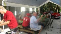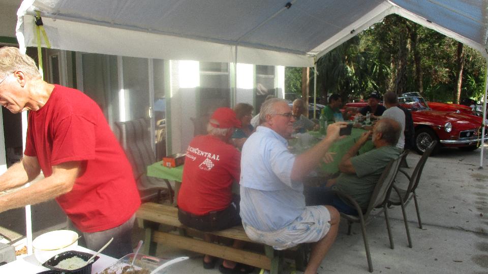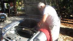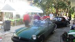 Next in line was a red MGB needing valve lash adjustment. Ideal opportunity for a quick tech session to show how to adjust valves without a feeler gauge. Loosen the jam nut, turn the screw (gently) down to zero clearance,