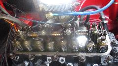 back it off exactly 1/4 turn, and tighten the lock nut. Like magic, 0.015-inch clearance, +/- 0.001. Do two valves that are up. Turn engine 1/2 turn and do two more valves. Ditto, ditto, 1-1/2 turns of the engine gets all eight valves adjusted. Not that they don't trust me, just that they like to verify it to see for themselves, so they checked all the gaps with a feeler gauge afterward. Six were verified within 0.001", two seemed to be off about 0.002", certainly close enough to run well, but we readjusted those other two just to be nice.