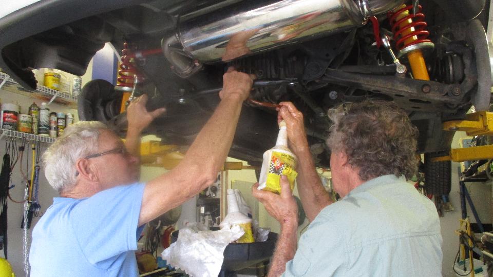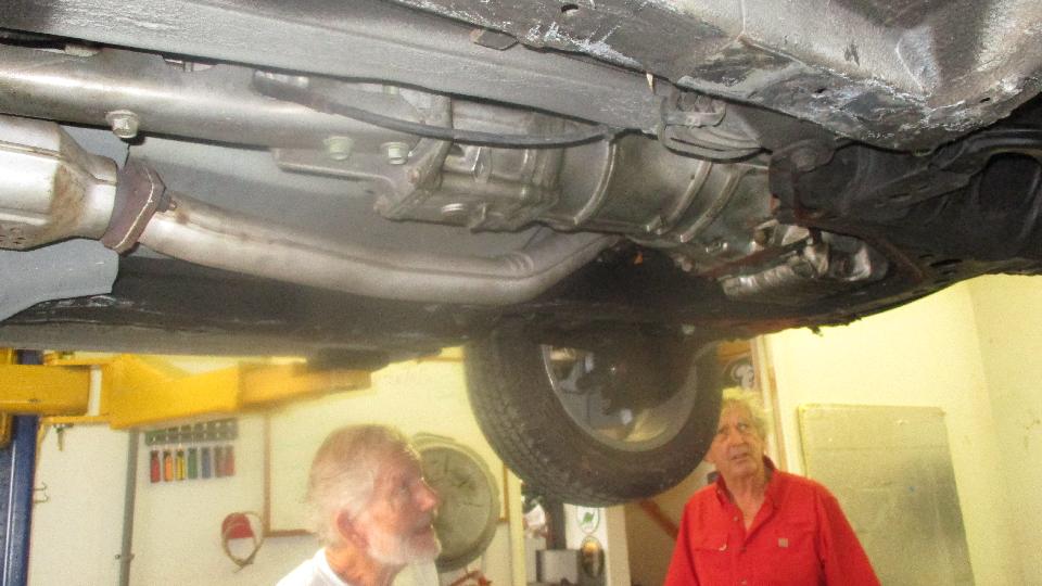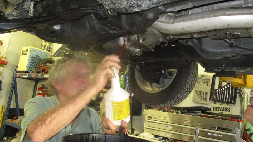 After putting oil in the gearbox and differential, we were installing a heat shield under the floor, above the catalytic converter. There were lots of other small parts yet to be identified, some light sheet metal brackets and a lot of plastic bits. Many of the plastic parts are so thin that I have no idea how they can survive a bumpy road without breaking up. Being a career machine design engineer, maybe I just don't understand modern consumer product, or the philosophy of making everything cheap rather than durable.