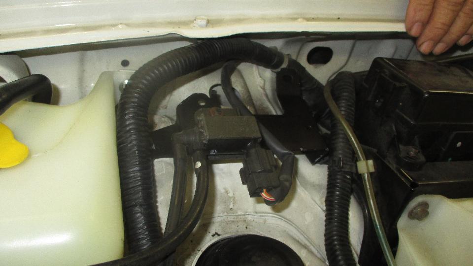 The solenoid valve was connected to fuel vapor recovery. The rather complex bracket it sits on appears to serve no purpose, as the valve could just as well be attached directly to the inner fender. But the bracket appears to have provisions to hold a few other devices under other circumstances.