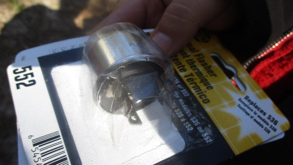 then fail again, and again, and again. If the expensive electronic flasher we bought in Alaska in July has crapped out in five months, we don't need another one of those. So we tapped the local NAPA for a new thermal flasher unit (a couple of them). Then back to tech Central to fiddle with the flasher. After a while we think it is a loose plug-in connector, pinch the contacts a little, reinstall the electronic flasher, and it seems to work okay.