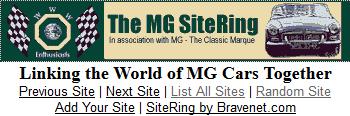 On inquiry with Bravenet tech assist, I have been informed that the Bravenet site ring service has been discontinued, apparently without notice. This leaves hundreds of ex-member web sites with a dysfunctional web ring linking block on their web page with no notice that it will not work or that they may remove it from their web page. Fortunately it does not otherwise affect function of their web page. Pity, as I have been diligently managing the MG Site Ring for about 15 years. Well, one less mildly time consuming job for the MGA guru. If you have one of these MG Site Ring linking blocks on your web page you can delete it.