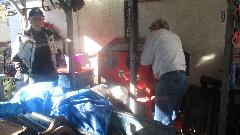 In southern Florida, winter is not only driving season but good working weather as well, so always something going on at Tech Central on Fridays. The big Jag was idle in the morning, but the owner popped in late in the day to delay our departure for a short chat. Got the small animal nests vacuumed out from on top of the engine, but still needing to remove the fuel tank from the boot.
