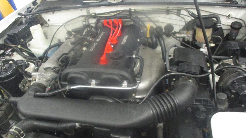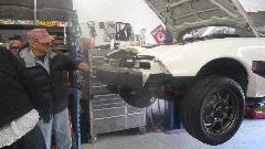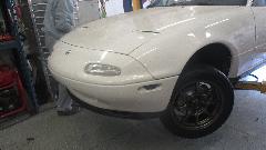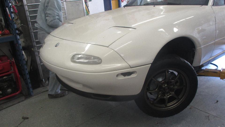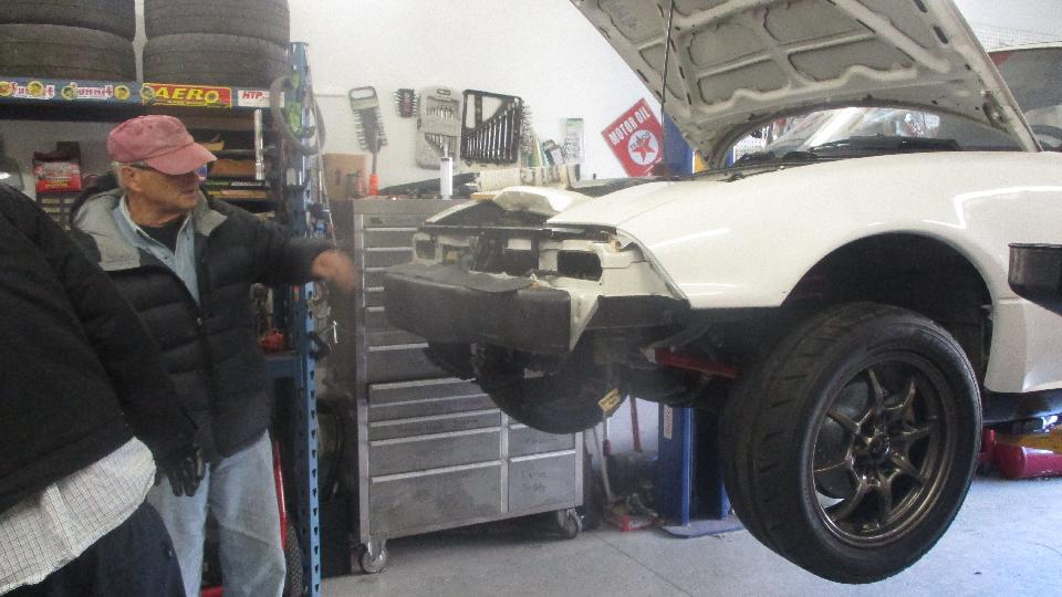 In late afternoon, we had time to check out the Miata reassembly project. The front end we finished, including fender liners in place. Fuel injectors were sticking, no click with a 9-volt battery. So they got soaked in solvent for a while, and a good rap on the side would free them up to go click with the battery. With a clean fuel tank, fresh fuel and new battery, it fire up in short order, ran a little rough at first but smoothed out nicely after a few minutes. Must be getting close when figuring out where to stow the traveling jack. It still needs front end alignment and brake bleeding, but it moved a few feet under its own power for the first time in 20 years.