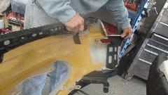 The Spridget was having serious surgery to replace parts of the underbody and floor, lots of abrasive cutting today.