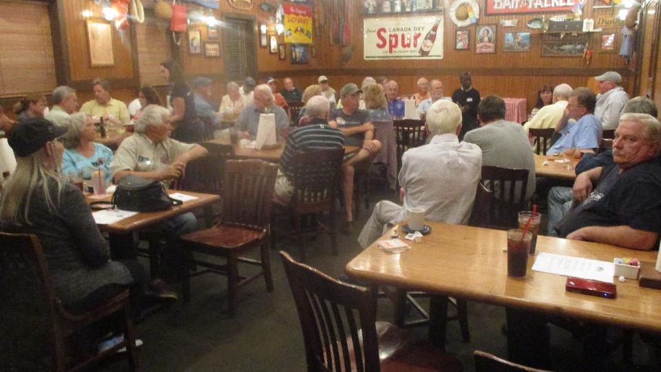 Tech chat about ignition coil, distributor mounting, MGA Coupe door assembly, brake light wiring faults. Then an evening visit with British Car Club of Southwest Florida. Been here before. Met a new guy in the car park on arrival, introduced him at the meeting, got him signed up as a new member. He has an MG TF that may want some attention a little later.