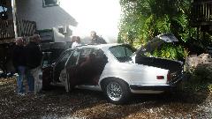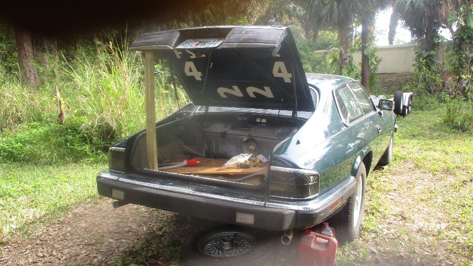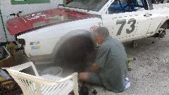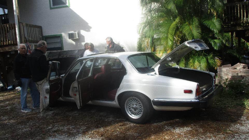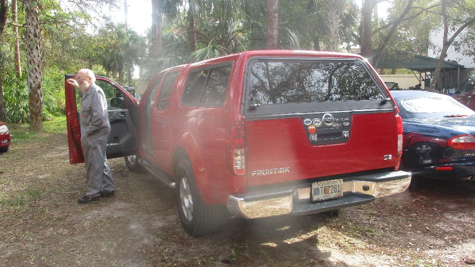 The visiting Jaguar is progressing slowly, more attention to the fuel tank, and some chat about hail dents on top. Also smile for the high mileage well traveled Nissan Frontier.