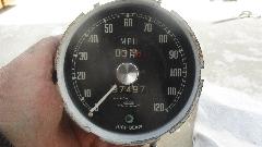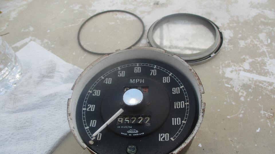 The the fun of putting the needle back on in the original position. Holding the instrument upright, position the needle just below the little spring wire, and press it gently onto the shaft, and let the needle drop. You want it to drop back to the exact position it had before disassembly. If not, then pull the needle off, reposition it slightly, press it back on, and let it drop again. You may have to do this several times before you get the needle position where you want it. When you're happy with the needle position, press the needle hub firmly onto the shaft, then reinstall the light shield ring, glass, and chrome bezel (along with two rubber sealing rings). Everything peachy, reinstall it back in the car. While I was in there I also removed the tachometer to put one drop of oil around the tail end of the input shaft, because it has recently been squeaking when cold. No big deal, it's just maintenance.