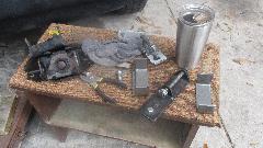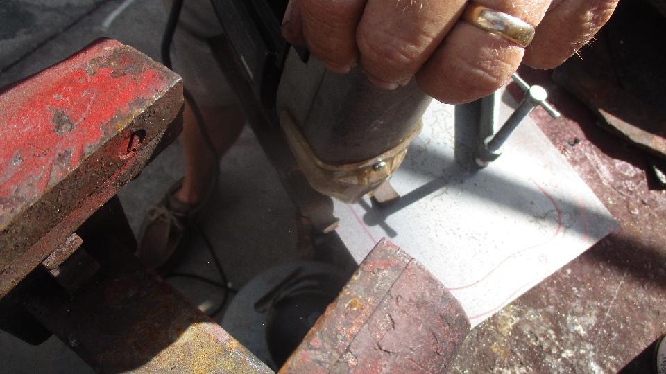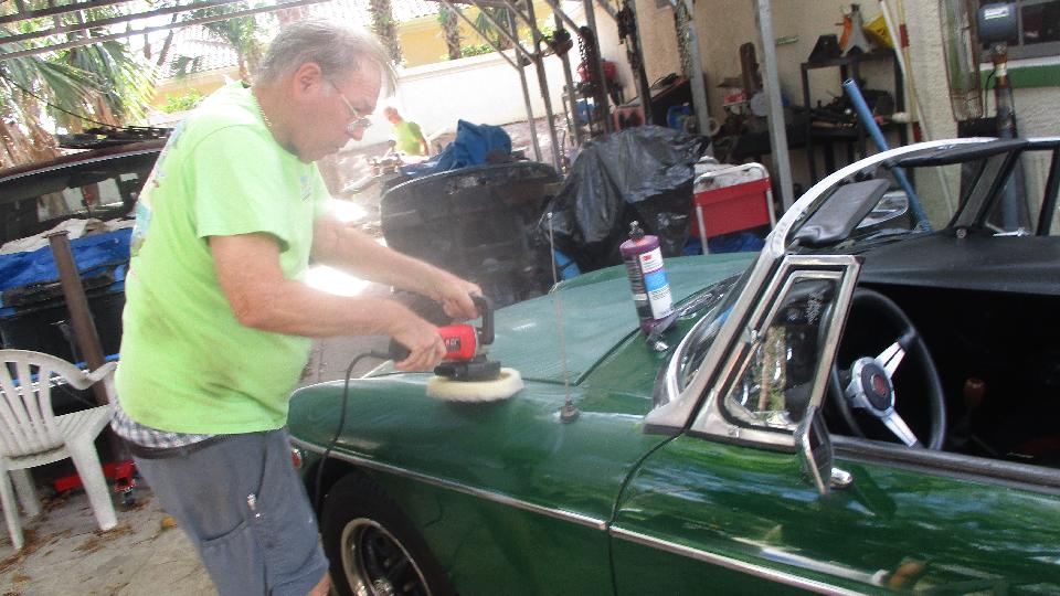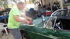 Another project was to cut out a thin metal plate to use as reinforcement around the bottom half of the timing cover on an MG Midget (Austin A-series engine). That may eat a couple of sabre saw blades and a drill bit, but otherwise straight forward. Late in the day the MGB (the one with the drip fixes) was getting a good massage to rub out the paint, not done since it was repainted a few years earlier.