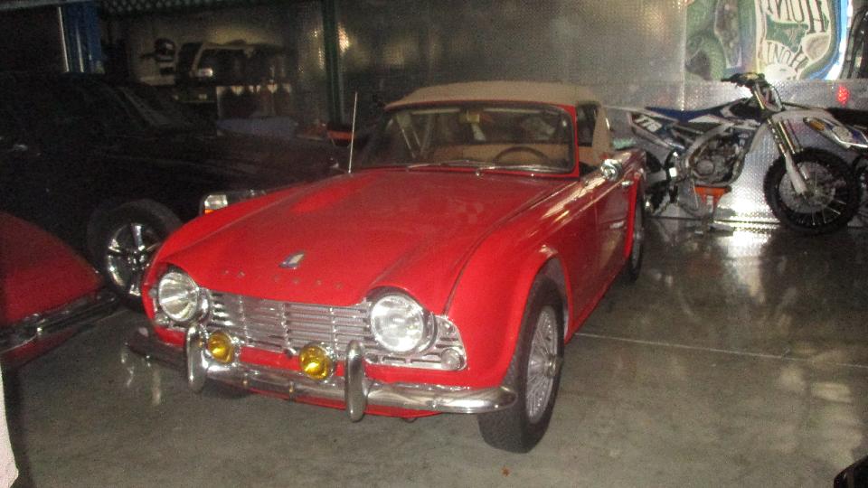 A larger building out back is mostly for storage, and there must be at least two dozen cars stashed in there. We found another TR4, a TR6, a Mini Moke, and a Fiat X19 back in the corner.
