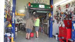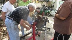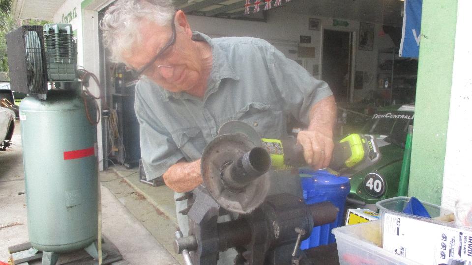 Our afternoon appointment cancelled out in favor of knee sugery, so we had a quick change of plans, heading three hours north (now a day early) to visit Ron and Michelle Edwards in Alachua, FL (just north of Gainsville). We arrived just a bit early for dinner, so had a chance to check out some of Ron's toys. Good that we have a couple days to spare now, because the MGA on the hoist is going to need some TLC on a rather abused rear axle. We had a little prior discussion about this, so Ron had a head start by draining the gear oil and removing wheels and brake drums and half shafts and pulling the differential.