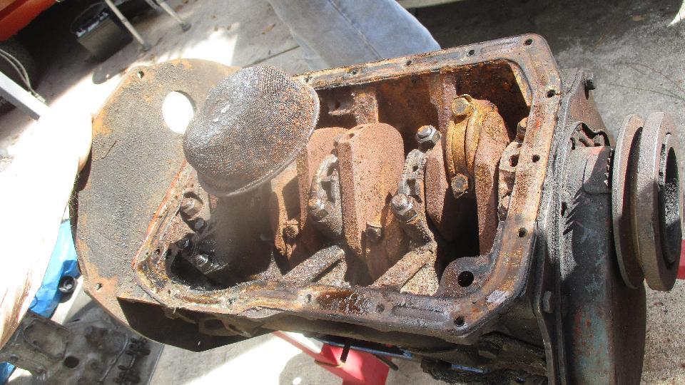 Around the side was a new project, a totally seized MGB 5-main bearing engine being disassembled with intent to rebuild it. Broken bits on the front flange of the balancer were probably not detrimental to function. Found a few wasp nests in three of the combustion chambers. Before day's end the front end was disassembled, all of the bearing caps were off, then taking it off the stand to remove the rear plate so the crankshaft could come out. I missed the process of beating out the stuck pistons.