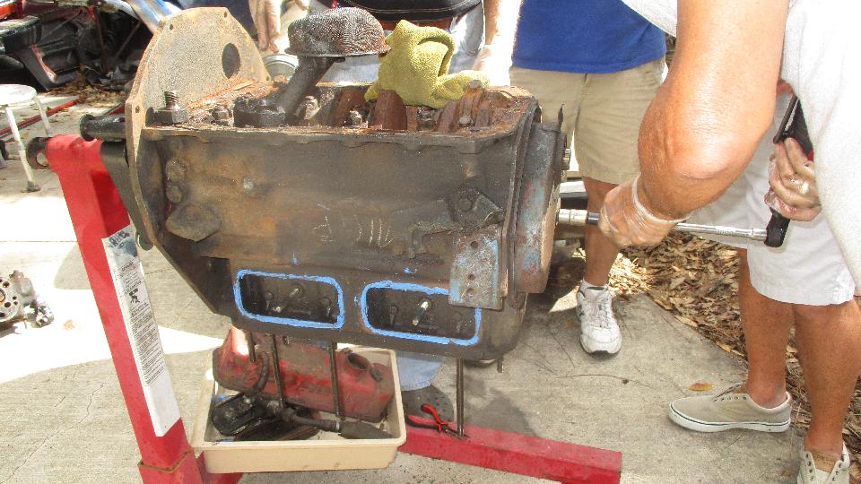 After just a cursory inspection it was time for dinner, followed by a late night chat about, well, things, you know, with a little plans for the next day mixed in. Then when they get to turn I have to go to work. A quick late night crunch to finish and send the monthly report to CMGC with a bunch of pictures (very late, I'm sure). And a late night tech question about shaving a cylinder head and cutting eyebrows in the engine block to clear the exhaust valves at full lift.