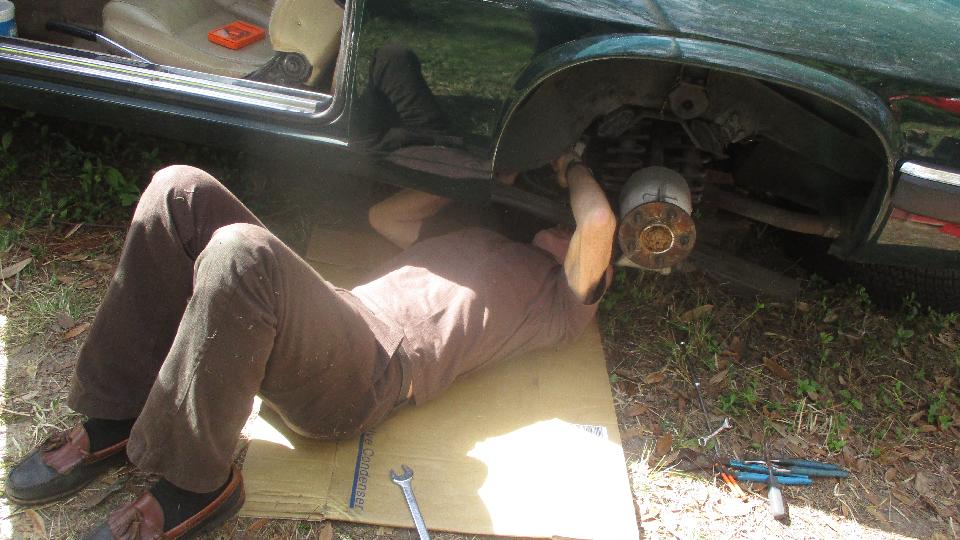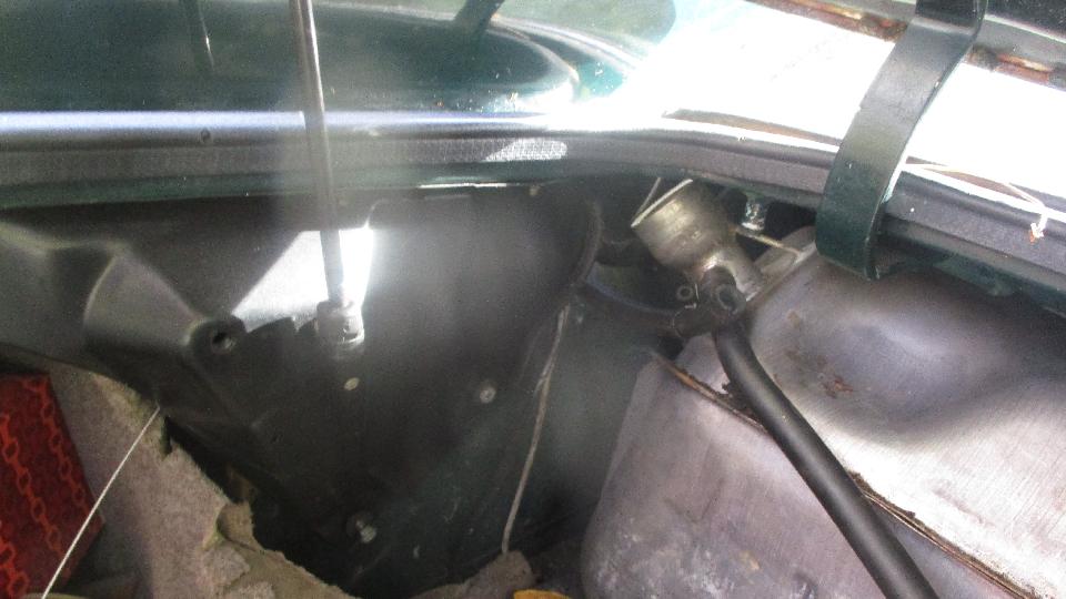 Back to the Jaguar again, still working to remove the fuel tank (four weeks into this project). Finally found disconnects for two hoses underneath. Then had to remove two boot lid gas struts and their supporting brackets, struggling with lots of electrical stuff attached behind the brackets. Missed lunch in the process. But by day's end the fuel tank was finally out, and they were searching for a radiator shop to have it boiled out.