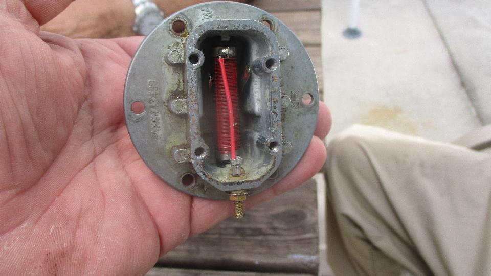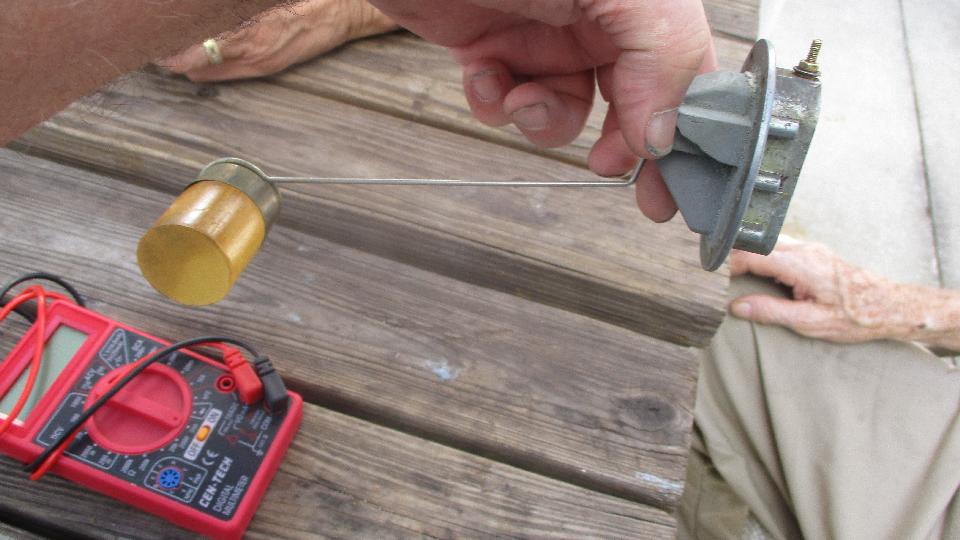 Then we were working on a fuel gauge for a MG Magnette. Found a little resistance with continuity on the gauge itself, probably okay. Open circuit on the sender unit turned out to be a broken wire inside, which should be easy enough to fix. Resistance is continuously variable through full motion of the float arm, so this will soon be good to go back in service.