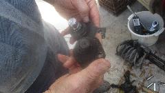 They took the replacement struts and cut away the old coil spring support shell to make way for the new adjustable coils. Oddly, the new adjustable coil mounts required to grind away all of the collar and weld from the old coil spring support. Then the new adjustable coil mount slid too far down the strut housing, so they set about cutting welds to retrieve a spacer tube from the prior racing struts that already had the coil over parts. After some comments about this little chore being a lot more involved than anticipated, I decided to leave them to their own resources, as I can claim to know nothing about either Toyota or aftermarket racing coil-over spring kits.
