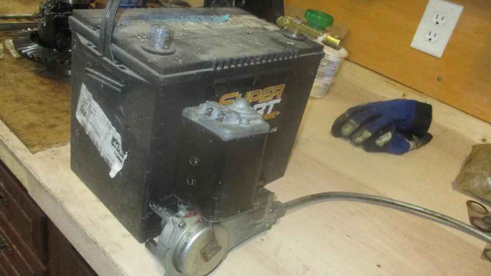 Time to test the screenwiper motor for the MGA. Battery and three jumper wires, ground wire to the motor case, power to one terminal, ground the other terminal to get it started, and it runs. Remove terminal ground connection, and it continues to run to park position. Perfect, ready to install. Wipers should park in front of the driver, so for LHD car the drive cable should stop in the extended position. If not, then rotate the parking commutator cover 1/2 turn (and test it again to be sure.