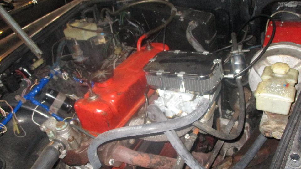 We had time to check out some of the other rolling stock on hand. Late model MGB with a Weber side draft carburetor. I was a bit surprised that the air cleaner fit next to the brake booster, but wonders never cease. Vent pipe from carbon canister to carburetor float chamber is not connected, so no vapor recovery or anti-run-on function, and pretty sure no vacuum for crankcase ventilation either. - Late model MGB with Weber downdraft carburetor, vented float chamber, and tappet cover vented to the air cleaner. No crankcase ventilation, no fuel vapor recovery, and no anti-run-on function (all common for the downdraft, but I do know how to fix that one). - The last one is late model MGB, very low mileage, all original, everything working, n-i-c-e.