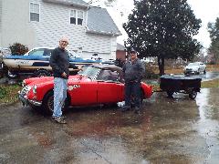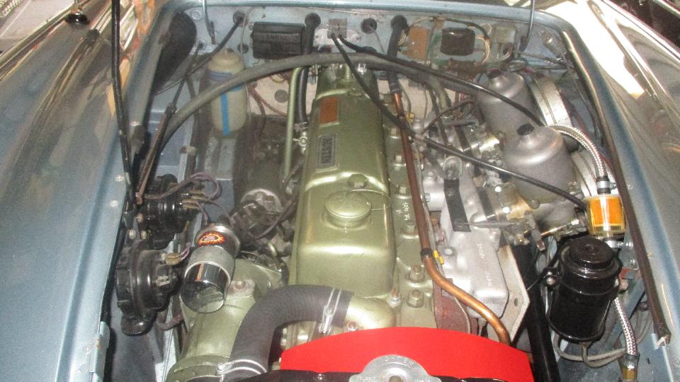 The big Healey engine is pretty original, including the somewhat restrictive pancake air cleaners. -- Then a friend popped in with his very nice MGA 1600- MK-II, so we stopped for a tour and a beer break and some extended chat, which killed most of the rest of the day.