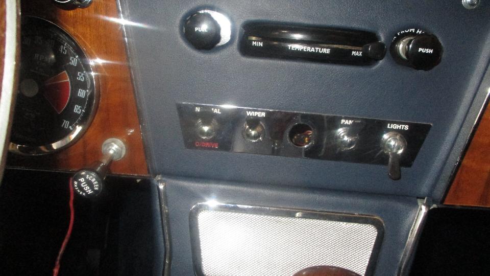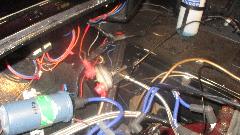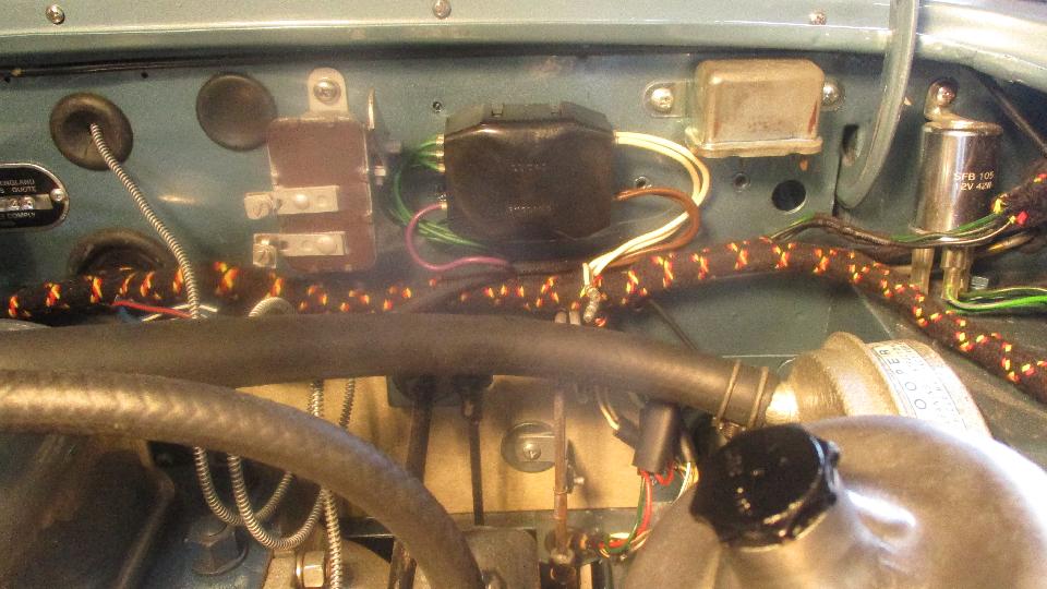 Then there was a big Healey that apparently runs but has non-functional overdrive, which we may be able to fix. A bit of scrounging turned up a neat little wiring harness for the overdrive. Consulting the wiring diagrams, we got power from the fuse block, several wires on the 4-terminal relay, two wires on the acceleration switch, and one more to be connected to the gear selector switch (later). We did a pretty good job of hiding the little harness behind the big harness. Missing link rod for the accelerator switch, we found a like example on a sister car. Looks like 1/8-inch round rod, two bent ends 9-1/4-inches on centers. Should be easy enough to make one if a spare is not available.