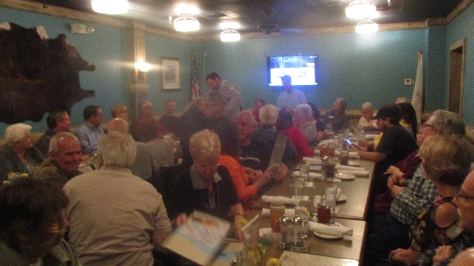 hours later we arrived at Jan's Beach House, AL for a dinner meeting with British Motoring Club, Montgomery, Alabama. A little shy on turnout in the dribble, but a friendly group, about 18 people. We were here a year ago (also two years back), but some of tho folks hadn't heard about our follies yet, and others were anxious for a update. Good dinner, good time, and we finally retired to a WiFi spot around nineish.